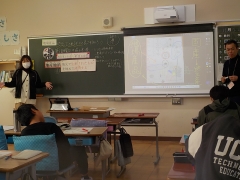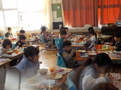栄養教諭とともに食育の授業に取り組んでいました。今日のテーマは、「地産地消」です。今日の給食メニューの食材の生産地を示してもらい、地産地消の良さについて考えました。「野菜は新鮮なものがよい」と子どもたちも考え、四日市市内から運ばれている意味について考えました。食材を選定したり、メニューを考えてくれたり栄養教諭の仕事は大変です。しかし、子どもたちがおいしく安全に残さず食べてくれることが栄養教諭や調理員さんの喜びでもあります。今日の給食も残さずおいしく食べてほしいものですね。