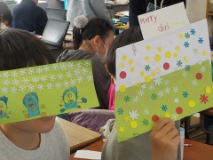 冬休みが近づき、子どもたちが楽しみにしているクリスマスもまもなくです。一人一人が工夫してクリスマスカードを作っていました。クリスマスカードはクラスで交換する様子で丁寧につくっていました。