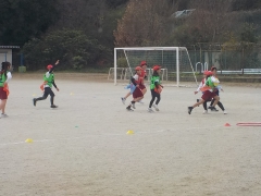 一つのボールを運び、ゴールするために考えて走っていました。寒い時期なのでみんなが動いて運動量を多くすることで体力向上を図れるようになるといいですね。