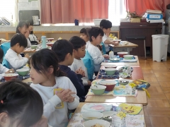 地物一番給食でした。三重県でとれた野菜がたくさん出ました。うどんが寒かったので格別においしくいただきました。