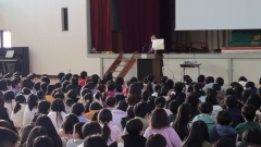 二学期最後の一日です。終業式の前に、表彰式を行い、三泗小中書写展や人権作文、人権標語などの表彰状を渡しました。