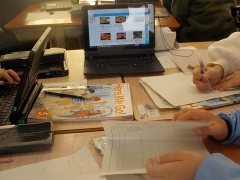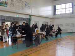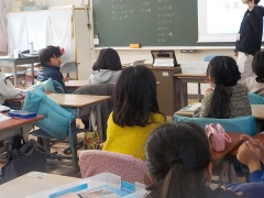 そのあと、1年生の教室にいき学習の様子を見学しました。いっしょに手話をしたり、タブレットを興味深く眺めたり、難しい漢字をきれいに書いている1年生の様子に自分たちのこれからの姿を重ねていました。