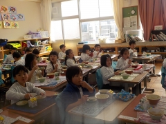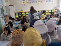 こっこ保育園の年長さんが常磐西小学校に来てくれました。4月から常磐西小学校の1年生に入学する人も含めて約20名が訪問しました。