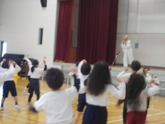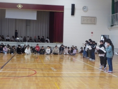 6年生を送る会に向けて4年生が出し物の練習をしていました。隊形や移動なども含めて練習していました。