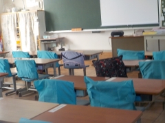 いつも1階の廊下を歩いていると元気な声が聞こえてきますが、今日は廊下が静まり返っています。1年1組、2組、3組の3クラスが今日まで学級閉鎖で教室は暗く寂しい状態でした。