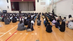 令和7年度修了式でした。6年生が卒業し、少し寂しい体育館となりました。