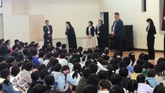 最後に4月から産休に入る職員の紹介をして、元気な赤ちゃんを産んで戻ってくれるよう大きな拍手で修了式を終えました。