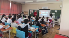 常磐西小学校にも春の本格的な訪れがやってきました。吉田山の桜もきれいに咲き誇っています。