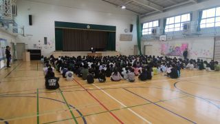 今日の1限目に、着任式・始業式を行いました。新しいクラスになり、わくわくドキドキのなか、体育館に集合し、静かに座って待つ姿はとてもステキでした。