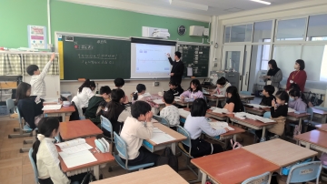 本日、本年度4回目の「コミュニティースクール運営協議会」を行いました。この会は学校教育活動の充実のために、学校と保護者や地域住民が協働して「学校づくりビジョン」の実現を図ることを目的としています。各クラスの授業の様子を見ていただき、その後にいろいろなご意見をいただきました。委員のみなさんからは、「どのクラスも授業が大変落ち着いてできて、学びに向かう姿勢が大変よかった」「授業のめあてがよく工夫されていて、わかりやすい」「算数の少人数授業など、いつも一人もとりのこさない丁寧な授業ができている