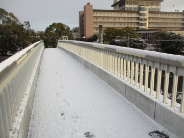 今朝は雪の中、たくさんの保護者や見守りボランティアの方々が登校に付き添っていただき、子どもたちは安全に登校できました。ありがとうございました。歩道橋の上などは雪がたくさん積もっており、明日の朝も凍結する可能性が高いので気をつけるように子どもたちに伝えました。