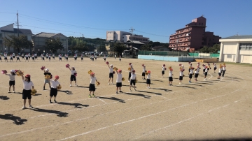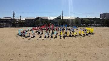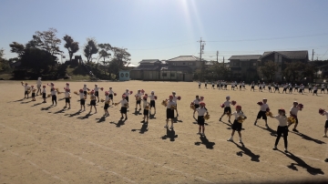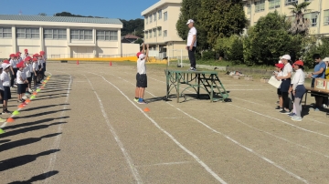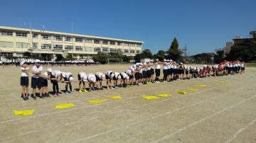 今日の運動会では、子どもたちが考えたスローガンの通り、一人一人が全力を出して走ったり、演技したりする姿が見られ、それぞれの子どもたちは持てる力を精一杯発揮してくれたと思います。子どもたちが頑張れたのは、保護者の皆様、地域の皆様のあたたかい応援のおかげです。ありがとうございました。