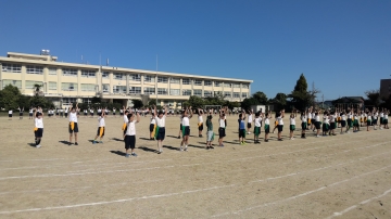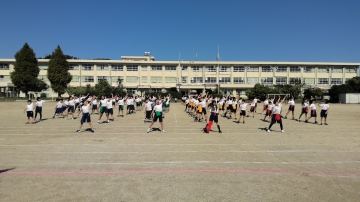 今日は、1限目に全体練習がありました。今年のスローガンについての話があり、全校で力を合わせて頑張っていくことを確かめました。そして、開会式や閉会式の流れを確認しながら練習をしました。来週に迫ってきた運動会に向けて、しっかりと取り組むことができていました。