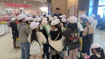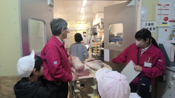 今日は3年生が社会科の学習で、校区内のマックスバリュ四日市泊店を見学させていただきました。ふだんは入れないお店の裏側なども見せていただき、