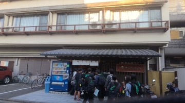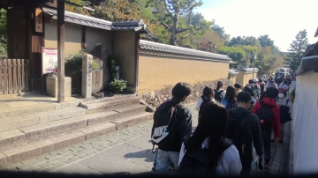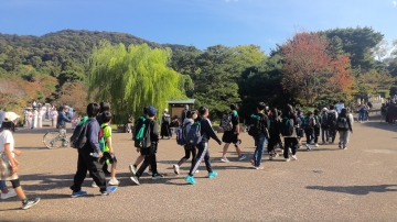 校長のタブレットパソコンのカメラの不具合により、旅館内の写真が撮影できませんので、知恩院の近くの昼食場所から円山公園や高台寺近くを通って、清水寺まで移動する時の様子を追加します。一日目は全員元気にすべての活動を終えることができました。