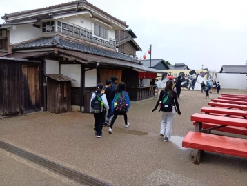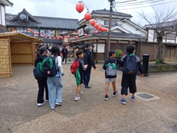 修学旅行の最後の見学地は、みんなが楽しみにしていた太秦映画村でした。昼食のカレーライスを食べた後、班別分散行動でアトラクションを楽しんだり、おみやげを買ったりしました。雨の降る時間もありましたが、ほとんど傘が必要ないぐらいアトラクションはうまくまわることができました。集合場所に戻ってきた子どもたちの表情は、どの子も楽しそうでした。