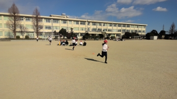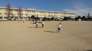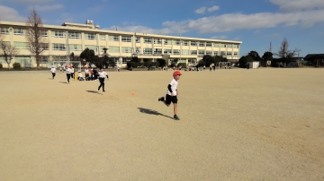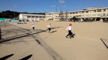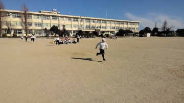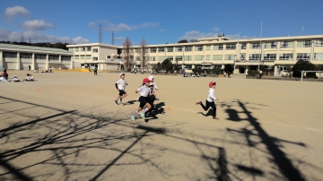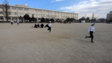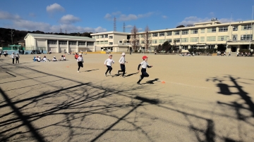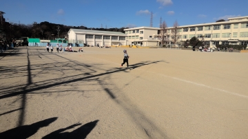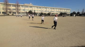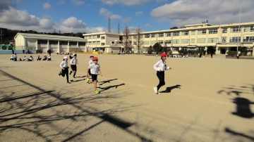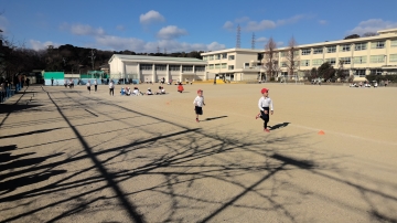 お越しいただき、子どもたちは12月はじめから体育の授業で持久走に取り組んできた成果を発揮しようと一生懸命に走っていました。1周200mのコース上に50mごとに置いてある