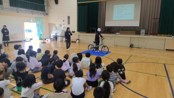 本校では毎年1年生と3年生で、四日市市交通安全協議会の「とみまつ隊」(止まる、見る、待つ)の方々に来ていただいて交通安全教室を行っいます。1年生では歩行時の交通安全を中心に、3年生では自転車に乗る時の交通安全を中心に体験や映像も加えて教えていただきました。四日市市内では小中学生の交通事故が増えています。ご家庭でも「横断歩道を渡っているか」「交差点で飛び出しをしていないか」この機会にご確認をお願いします。