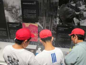 四日市市ではすべての小学校の5年生が、「四日市公害と環境未来館」を社会科の学習で見学し、四日市市が公害を乗り越えてきた歴史などを学びます。5年生の子どもたちは真剣に話を聞き、積極的に質問をするなど、公害を乗り越えてきた歴史を一生懸命に学んでよく理解できていました。