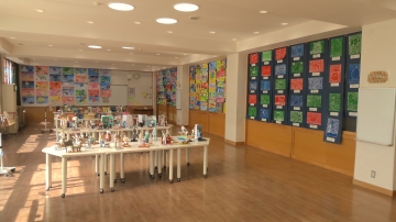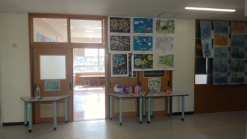 さて、今日から30日まで「泊展」(図工・書写作品展)で、図工の作品は多目的室に、書写の作品は各教室に展示してあります。明日は授業参観もありますので、子どもたちの一生懸命な作品をぜひご覧ください。