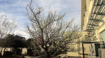まだまだ寒さが続いていますが、保健室前の梅の花が満開になり、改修したなかよし山に植えたばかりの梅の木にも花が咲きました。春はもうすぐそこまできているようです。