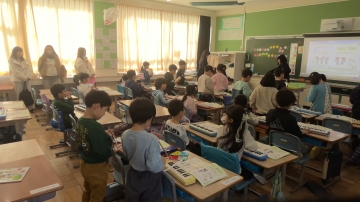 今日は5年A組の音楽の授業を職員で見合う授業研究を行いました。音楽の授業はすべてのクラスで担任以外の先生が担当していますが、どのクラスも大変意欲的に学習できています。特に今日の授業では、高学年らしく子どもたちが主体的に合奏の活動を進めることができ、「できた」「わかった」「もう少しやりたい」という意欲が感じられました。