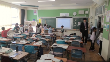 今日は先週に続いて、5年A組の国語の授業を職員で見合う授業研究を行いました。今日は本校の学力の課題でもある「自分の考えを書く」力を高めるための授業でした。子どもたちは友達と意見を交流して、自分の考えを広げて、さらにわかりやすい意見文を書く活動を進めることができていました。