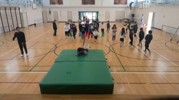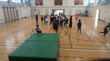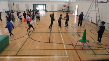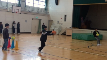 今日の20分休みは「泊山USJ」(体育委員会の子どもたちのネーミングで運動させまくるジェー)の実施日で5年生が優先参加できる日でした。3学期あらたに企画されたのは、体育館では「バスケットゴールに投げる」「コーンに向かって投げる」「セーフティーマットに向かってトライする」の3種目、運動場では「いろいろな距離からゴールに向かって蹴る」種目で、どれも大人気でした。体力向上のためには、運動遊びの環境を整えることが大切です。今後も定期的にこのような体力向上の取組を継続していきます。