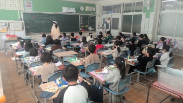 泊山小学校の発表は学校の特色などを〇✕クイズで紹介し、下の写真のように他の学校の子たちも楽しく参加できました