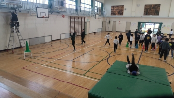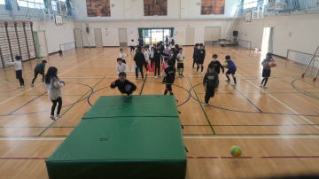 さて今日の20分休みは「泊山USJ」(体育委員会の子どもたちのネーミングで運動させまくるジェー)の実施日で6年生が優先参加できる日でした。3学期あらたに企画されたのは、体育館では「バスケットゴールに投げる」「コーンに向かって投げる」「セーフティーマットに向かってトライする」の3種目、運動場では「いろいろな距離からゴールに向かって蹴る」種目で、どれも大人気でした。体力向上のためには、運動遊びの環境を整えることが大切です。今後も定期的にこのような体力向上の取組を継続していきます。
