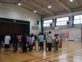 また離任式では今まで担任してもらった先生や長年お世話になった介助員や給食調理員の方々の話を真剣に聞く姿がありました。