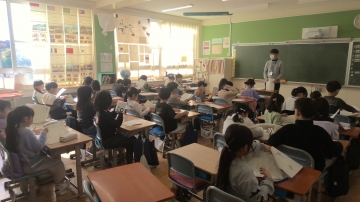 薬物の種類やその危険性、依存性についてと、それに伴う体への影響等をお話しいただきました。その後、映像を見て、どのように誘われるかやどのように断ればよいかなどを実技も交えて教えていただきました。実際に小中学生が薬物に関係してしまった事例も紹介していただき、これから中学生になるにあたって、自分事として考える貴重な時間となりました。