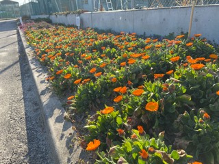 【富田中学校テニスコート横の棚瀬さんが心を込めて手入れしてくれている花壇です】