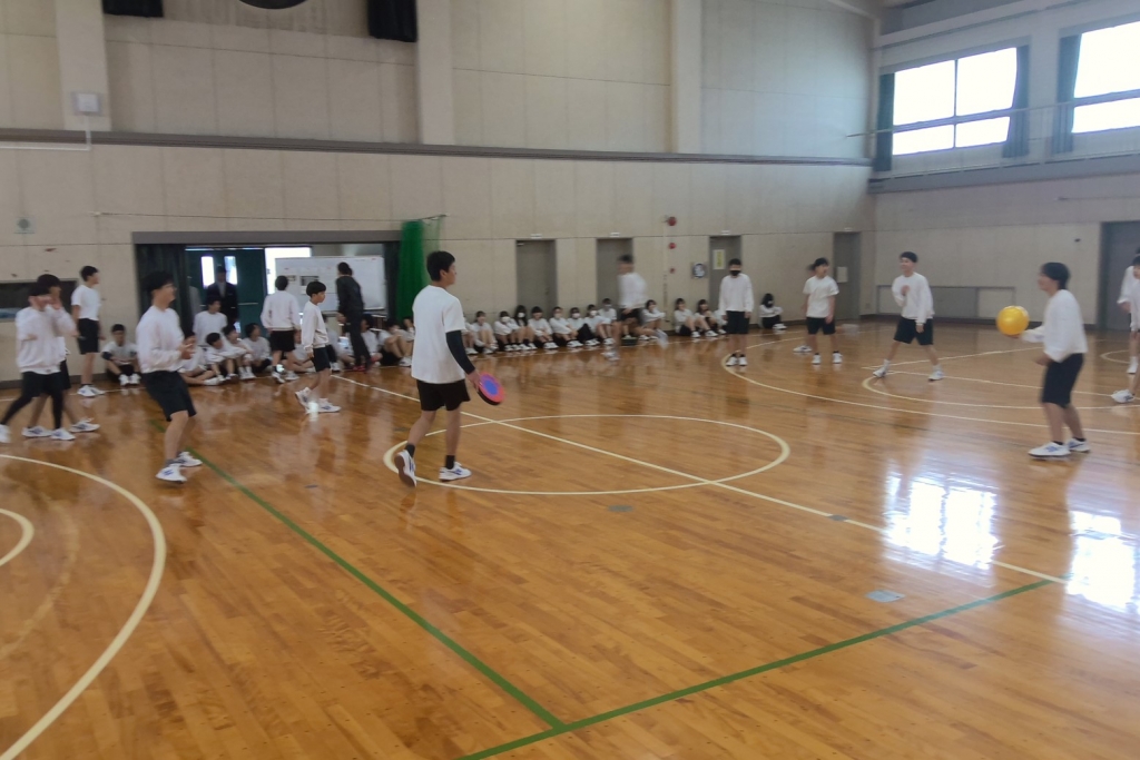 3月23日(月)の1・2限目に今年度最後の学年レクを行いました。体育祭の学年種目でも使ったドッジビーと柔らかいボールを使ったオリジナル種目です。タイミングの違うドッジビーとボールを紙一重で避けるなど白熱した戦いとなりました。