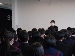 その後は、位田先生から春休みの生活について、三五先生から学習について、