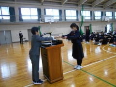 2限目 修了式の前に、表彰伝達