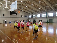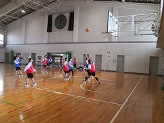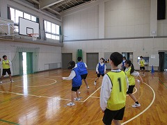 本日、体育の授業で3年生がバスケットボールの試合を行いました。どのチームもディフェンスを意識し、息を切らしながら全力で動いていました。