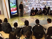 「働くプロに学ぶ」次の写真は、田村禎章先生です。スーツの上着を脱ぎ、子どもたちに熱く、そして楽しく、そして印象深いお話をいっぱいしていただきました。