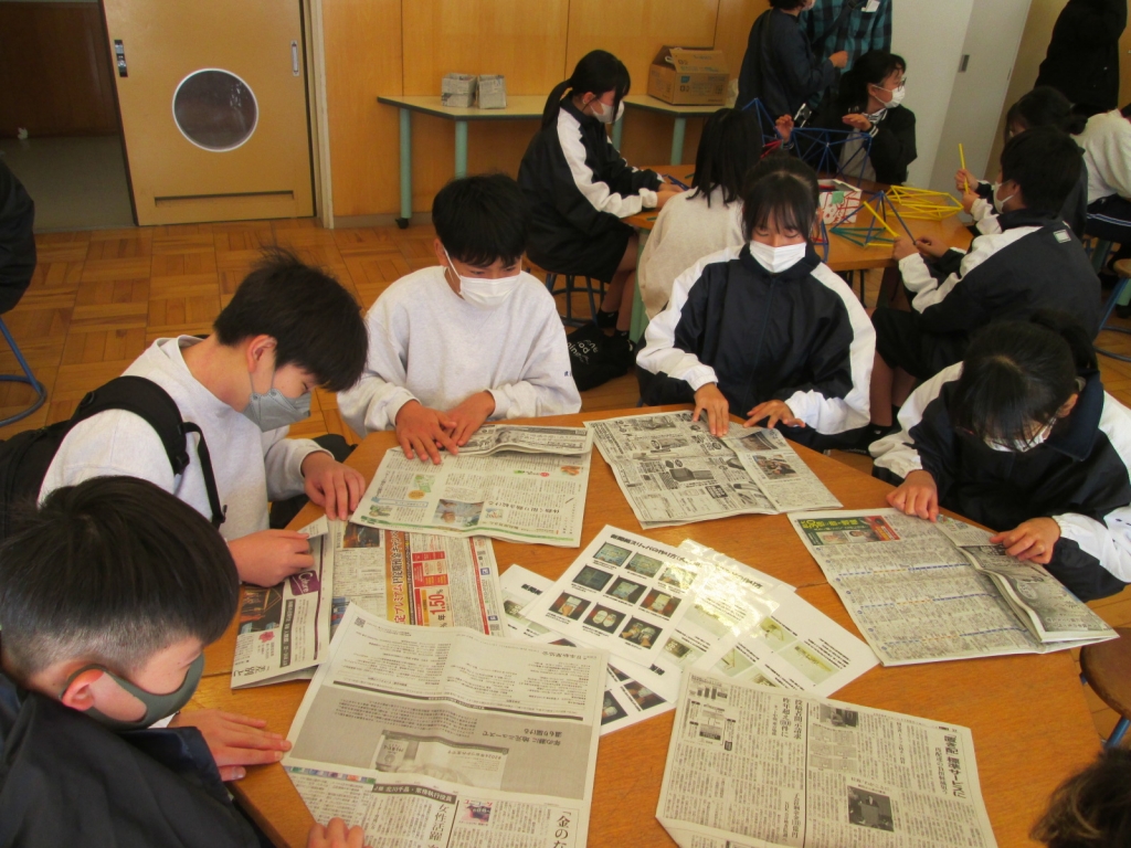 新聞紙を使った遊びなどを体験しながら保育職について学ぶことができました。