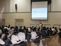 子どもたちの身近なことに視点をあてて、その事例をパワーポイントを活用しながら視覚的にも具体例をあげての説明と、伊藤先生の知識と経験からリアリティーあるお話に、子どもたち一人ひとりが話の中に引き込まれていきました。