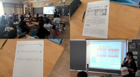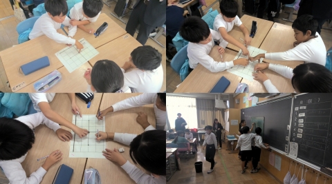 このような活動では,4人のグループでの対話的な学びによって,探究している様子がうかがわれます。担任の先生にインタビューすると,4人でしっかりと学べるように,その組み合わせ(グルーピング)も考えたと話していました。しっかりと聴き合う関係がとてもすてきでした。