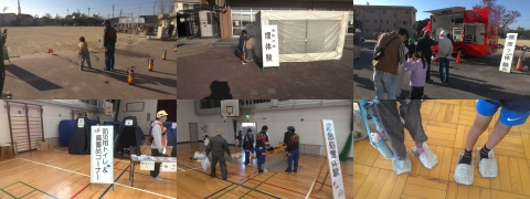 また,学校内では,起震車による,震度7の体験,放水体験,新聞紙でスリッパづくり,応急処置体験,防災用トイレ・テントの展示,煙体験,消火器体験など,数々の体験,見学コーナーが設定されていました。