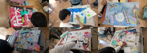 構想を描いたプリントを見ながら,イメージしたように制作を進めていました。