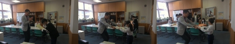 今日は1年生の3学級にそれぞれ一人ずつ,計3名のコーチが来てくれました。