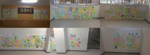 と言ったら,1枚紙をもらい,学級ごとに集まったものが,真ん中の画像のように掲示してあります。