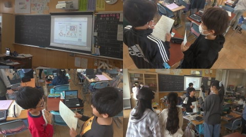 何度かリレーをした後、速く走るために、どうするよいか考え合う場面がありました。2つのチームから、手をつないだまま回転する、もう一チームは、走るのが得意な人が後ろ向きに走るといった方法を伝えていました。