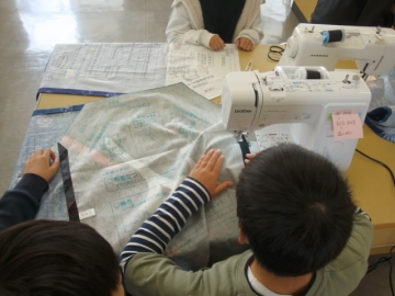 使い方を友だちと確認しながら、慎重に縫っていました。