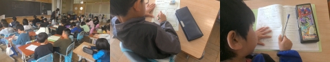 2限目は、町別児童会で、登校班の班長が教室まで迎えに来てくれて、それぞれ住んでいる地区の該当教室に移動しました。