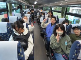バスの中では、子ども達が考えたレクをして楽しく過ごしました。