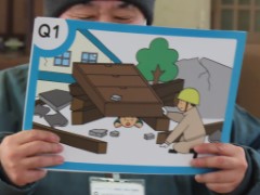 『なまずの学校』ゲームでは、様々な災害の場面に何を使ってどのように対応するのかチームで考えて発表しました。